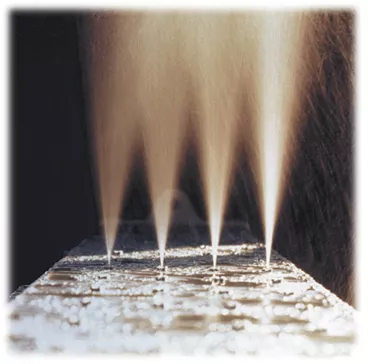 módulos de pulverização compactos incluem os bicos e as válvulas de controle digital. Os bicos atomizadores hidráulicos fornecem um padrão de pulverização uniforme e estável para controle de umidade sem riscos. Os tamanhos dos bicos e as taxas de fluxo são personalizados para a aplicação. O controle digital fornece regulação precisa do fluxo de água para cada zona de perfilamento. A manutenção é fácil com blocos de pulverização modulares e bicos de estilo de desconexão rápida