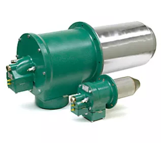 O padrão da indústria para queimadores de velocidade, o ThermJet de baixo NOx representa um salto tecnológico em todas as áreas de design e desempenho. Testes de comparação mostram que o ThermJet oferece as menores emissões de qualquer modelo competitivo. Orifícios de gás e ar integrados simplificam a tubulação, configuração e ajuste do queimador. As entradas de ar e gás são ajustáveis independentemente em incrementos de 90 graus para se adequar a uma variedade de alternativas de tubulação. Os queimadores estão disponíveis em 14 tamanhos com capacidades máximas variando de 150.000 a 20.000.000 Btu/h. Todos os modelos também estão disponíveis para uso com ar de combustão pré-aquecido. A instalação, operação e manutenção são simples e econômicas. Os queimadores de fogo direto ThermJet são feitos para durar – com a confiabilidade e a robustez do Eclipse incorporadas.