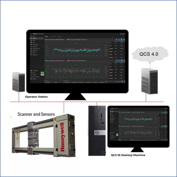 O QCS Standard Edition (QCS SE) facilita a integração de um sistema QCS no sistema de controle da planta e da máquina. Ele é baseado no confiável Honeywell Scanner com plataforma de medição de alta precisão. O QCS SE é suportado em plataformas físicas e virtuais. É uma implantação de nó único com um esforço mínimo para instalar, configurar e operar. A interface do operador do QCS SE é totalmente baseada na web, dando a oportunidade de operar e visualizar o processo de qualquer sistema com navegador e instalação zero. Além disso, o QCS SE é habilitado para IIoT. Isso significa que o sistema QCS SE conectado ao Honeywell Cloud rastreia o desempenho de medição e controle e fornece alarmes e recomendações em tempo real para atingir o desempenho ideal.