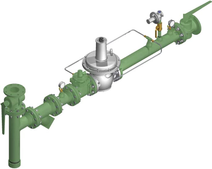 - Cada componente do trem foi dimensionado de forma ideal para fornecer um suprimento de pressão de gás preciso e consistente em toda a faixa operacional do sistema. O RGM também oferece proteção contra sobrepressão para proteger contra danos aos componentes a jusante no caso de uma falha do regulador de pressão de gás principal. Cada trem consiste em válvulas de isolamento, coletor de sedimentos, filtro, medidores de pressão, válvula de corte de segurança de fechamento rápido, regulador de gás combustível principal, uma válvula de alívio de pressão e tubulação de interconexão.