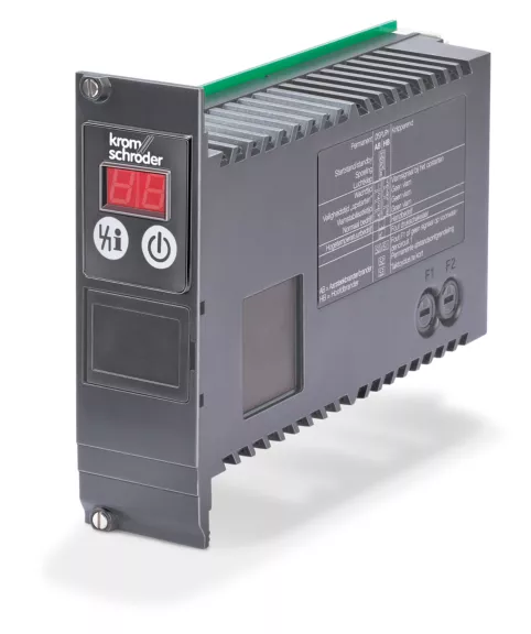 Para controlar, acender e monitorar queimadores de gás controlados por impulso, modulação ou estágio, para operação contínua com controle de ionização, para operação intermitente com controle UV (com sensores UV do tipo UVS) ou como variante para operação contínua com controle UV (com sensor UV UVD 1).