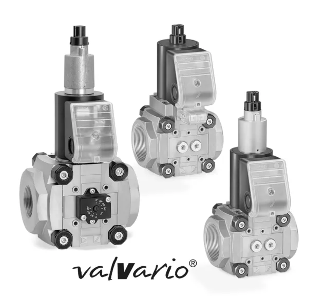 - Fechado sem corrente, pu máx. 500 mbar, com lâmpada piloto azul, com ajuste de fluxo