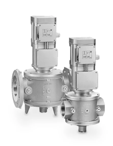 Válvulas de segurança de gás Classe A conforme EN 161 para desligamento automático, fechadas quando desenergizadas, abertura lenta, fechamento rápido, para gás e ar, certificadas pela UE.